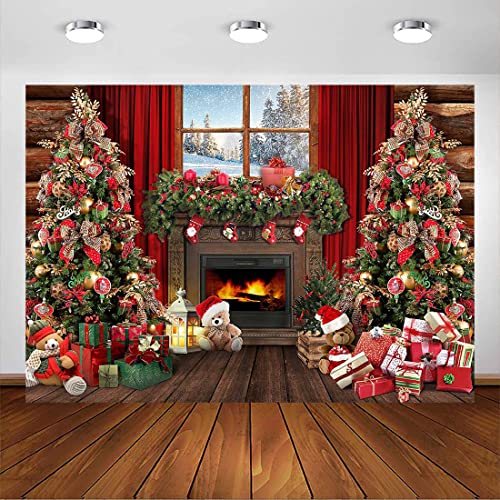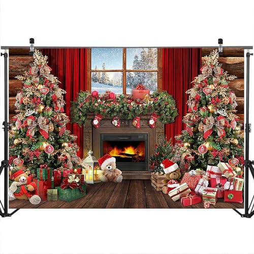 Avezano Hiver Noël Photographie Toile de Fond Rustique Fenêtre en Bois Arbre De Noël Cadeaux Fond Bébé Enfants Décorations De Fête Portrait Bannière Photo Studio Props (2,1 x 1,5 m)