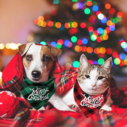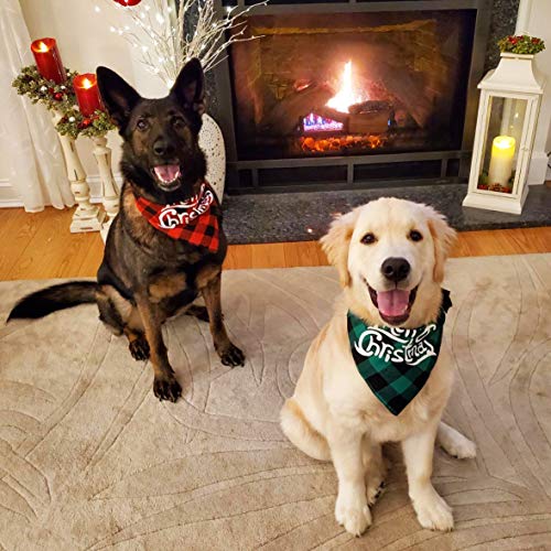 PACKAKGE INCLUDE: Notre ensemble de bandana pour chien comprend 2 bandanas avec un motif joyeux Noël et neige en vert et rouge. Idéal pour la fête de Noël, le jour de Thanksgiving, les accessoires photo, etc. Habillez vos chiens et vos chats.