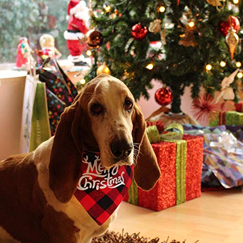 DESIGN UNIQUE – Ce bandana pour chien a un design à carreaux classique unique, avec un motif joyeux Noël et neige, décore parfaitement vos animaux de compagnie pour les vacances de Noël. Fait le bandana pour chien amusant idéal.
