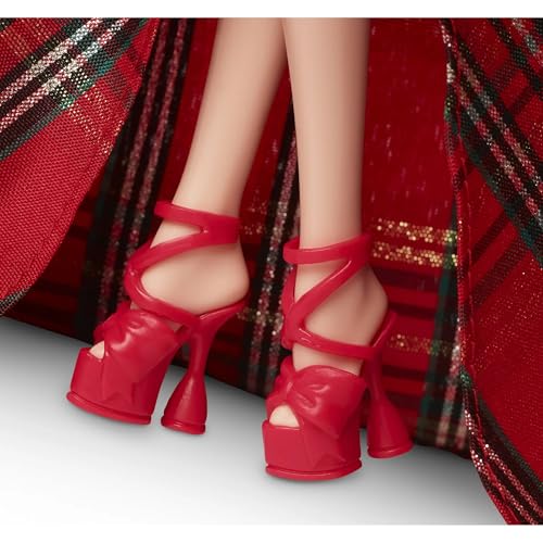 Superbe déguisement de vacances : la poupée dispose d’une robe rouge et à carreaux exquise avec des détails complexes et une jupe en tulle volumineuse.