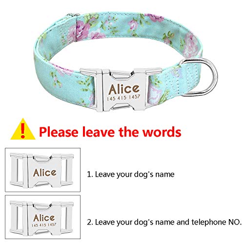 Beirui Collier Chien Personnalisé avec Plaque Nominative – Motif Tendance avec Boucle à dégagement Rapide – Convient pour Les Chiens de Taille Moyenne – Mint Green Floral Collier Chien, L