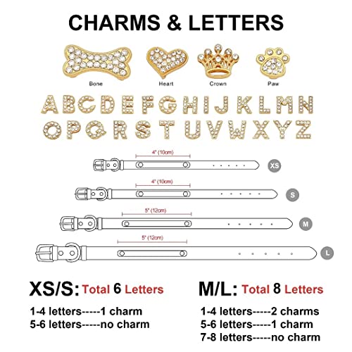 ▶Collier pour chien en diamant avec nom en strass – Vous pouvez même avoir une variété d’options pour créer des noms et des breloques à combiner dans votre propre collier de chien unique et magnifique. Prend en charge 1-4 lettres + 2 breloques, 5-6 lettres + 1 breloque, 7-8 lettres + sans breloques, par exemple « couronne + coco + couronne », « Belle + cœur ». Veuillez noter que la taille XS/S permet jusqu’à 6 lettres, et la taille M/L permet jusqu’à 8 lettres.