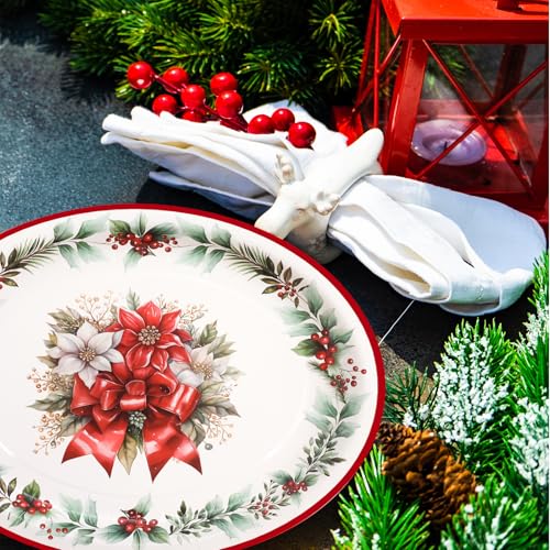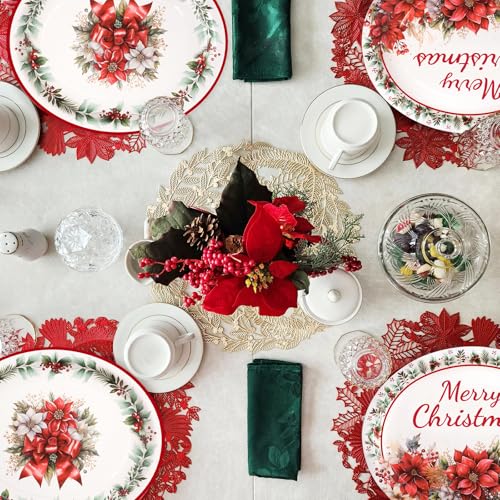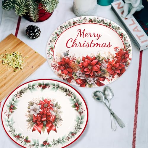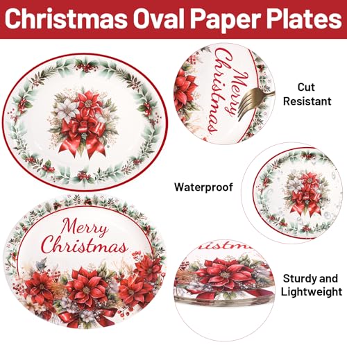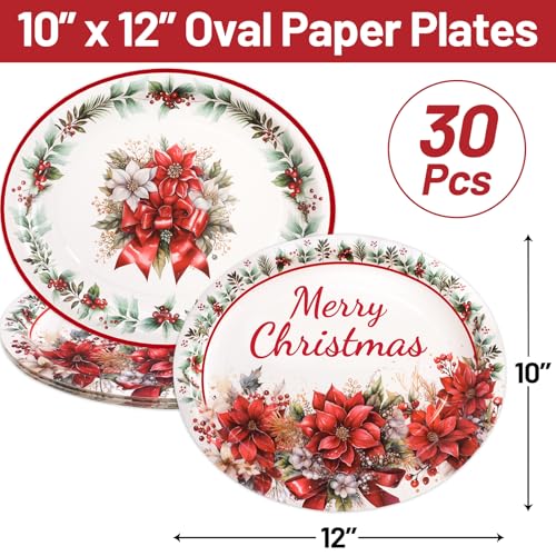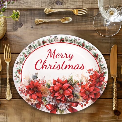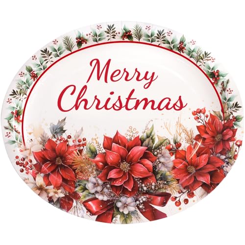 ceiba tree Christmas Oval Paper Plates 30 Pack Merry Christmas Poinsettia Disposable Party Plates Holiday Party Supplies