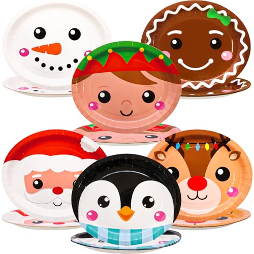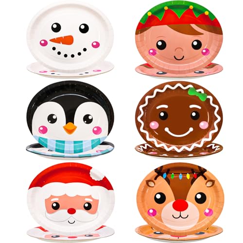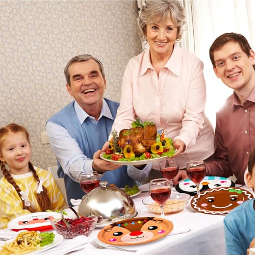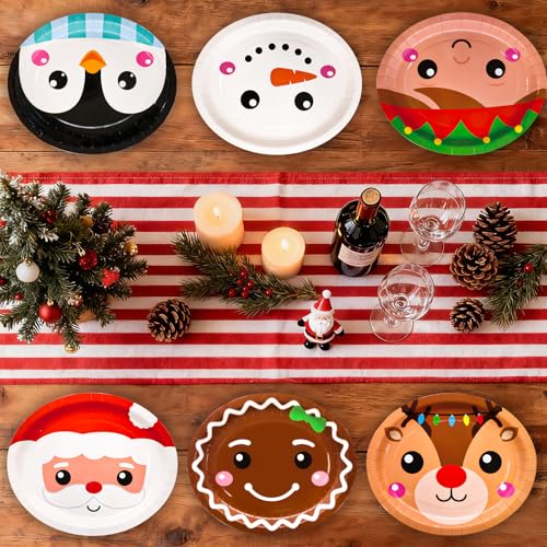 Design: 6 Different disigns, Santa, snowman, elf, penguin, gingerbread man, reindeer, Festive themed plates adding cheerful holiday spirit to your Christmas dinner table decorations,