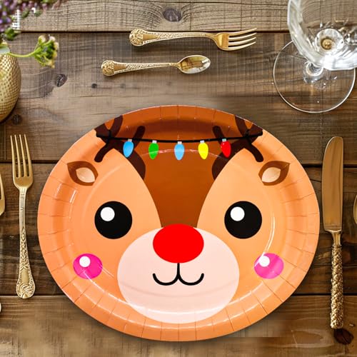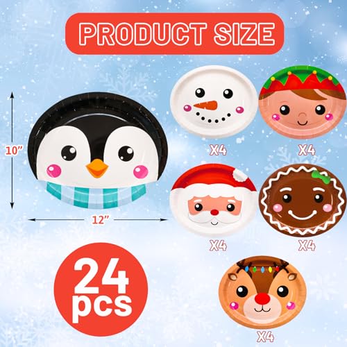 Package Contents: Set of 24 Christmas large oval paper plates measuring 10 x 12 inches for Christmas holiday celebrations