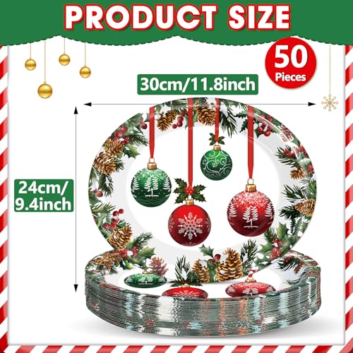 Package include: You will get a Christmas ornament party plate set with a total of 50 11*9inch plates. These disposable Christmas party plates are not only beautiful but also convenient, and can easily accommodate up to 50 guests, enough for your party or picnic needs.