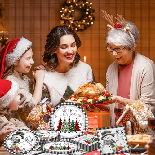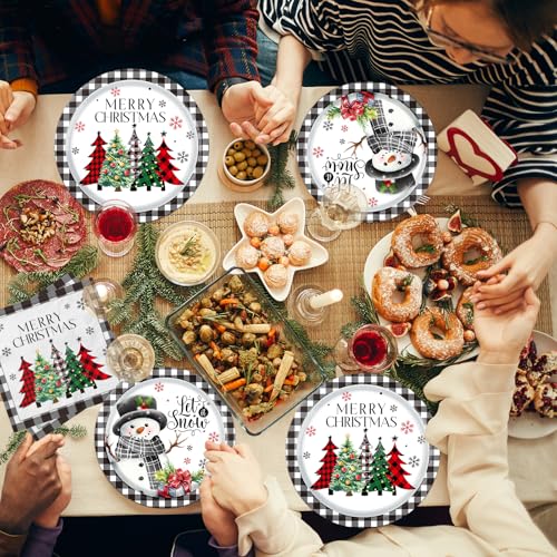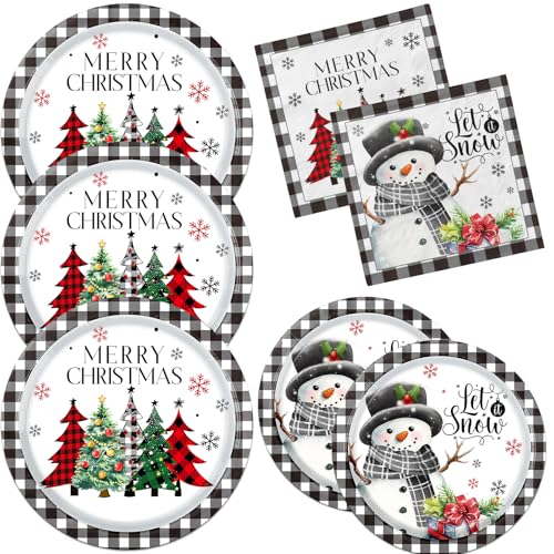 Christmas Paper Plates and Napkins – Buffalo Plaid Merry Christmas Tree Dinner Plates for Xmas Party Decorations (Black)