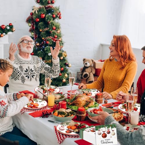 25 Disposable Plates Sets – Each pack comes with 25 plates and 25 napkins, providing enough for family gatherings, office celebrations, or Christmas parties without worrying about running out.