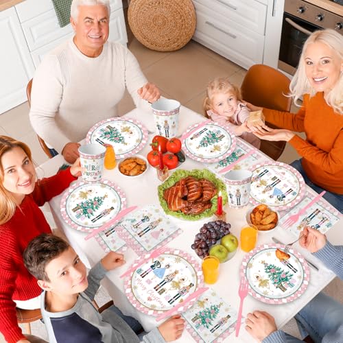 Christmas Party Tableware:Our 144pcs pink gingham Christmas plates and napkins include 24pc 9-inch disposable dinner Christmas,24pc 7-inch Christmas tree dessert plates,24pc 6.5-inch christmas napkins disposable.,24pcs xmas paper cups,24pcs pink forks and knivesthis christmas plates and napkins will add fun to you, your family and friends
