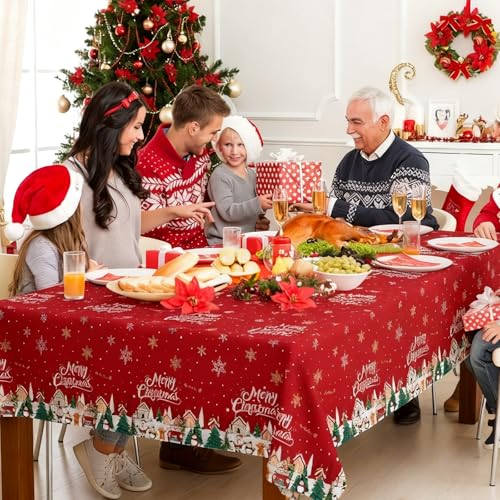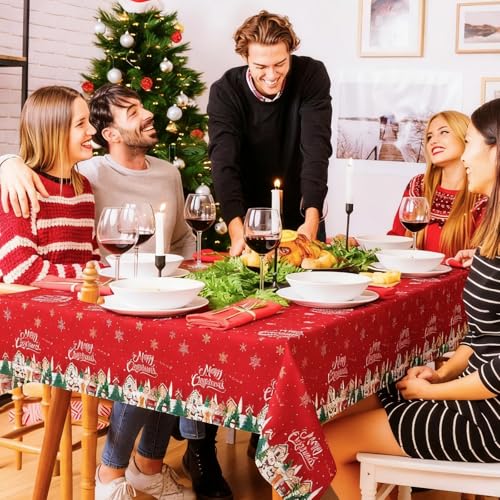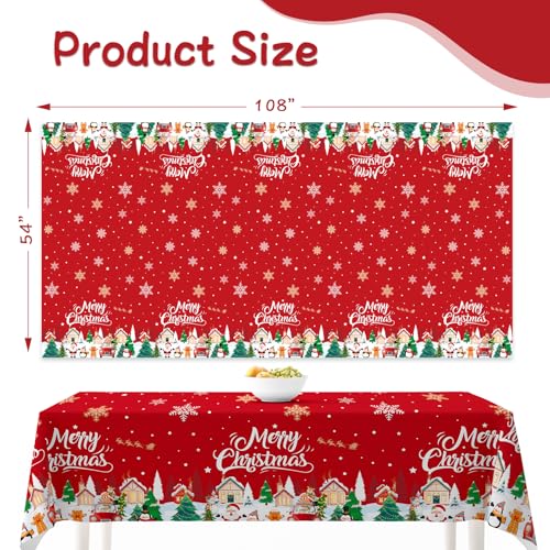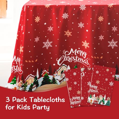 Lknnxs Christmas Tablecloth 3Pack, Rectangle 54″ x 108″ Merry Christmas Red Table Cloth, Plastic Table Cover for Festival Holiday Party, Winter Xmas Trees Table Decor for Home Party
