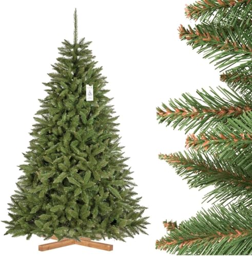 FairyTrees Sapin de Noël Artificiel 220cm ÉPICÉA Naturel | Arbre de Noël avec Support en Bois | Tronc Vert | Made in EU