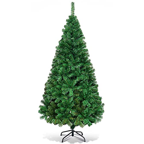GLACER 6FT Christmas Tree Artificial Fake Fluffy Xmas Trees with Metal Foldable Stand for Outdoor & Indoor, Green