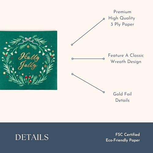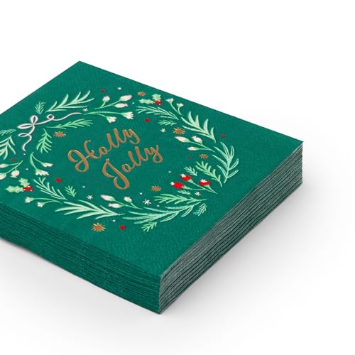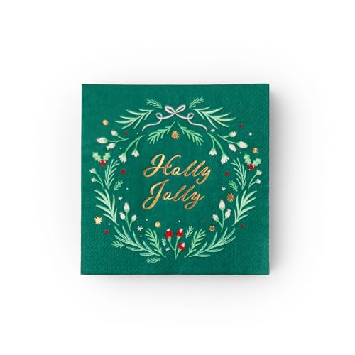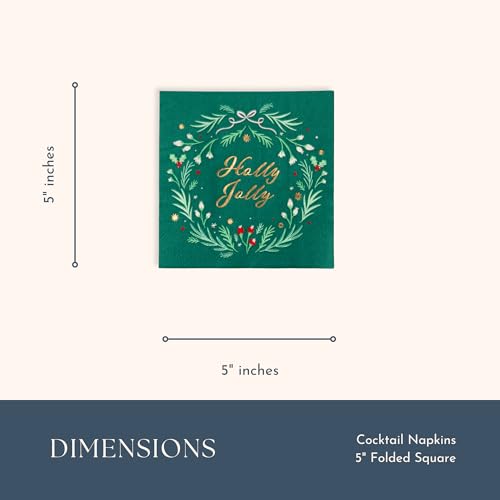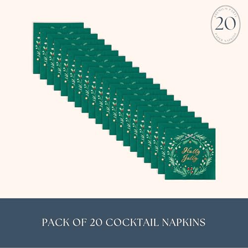 Holly Jolly Christmas Paper Party Cocktail Napkins | 3-Ply Fancy Napkins | Holiday Party Supplies for Christmas, and Holiday Parties | Pack of 20, 5″ Folded