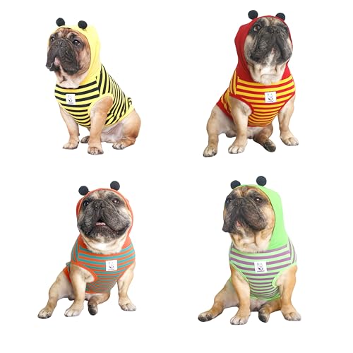 iChoue Costume d’Halloween « I am a French Bulldog Bee Bumblebee » – Vêtements d’Halloween à capuche sans manches – Tenues de costumade pour chiens de taille moyenne – Chiot Boston anglais – Noir et