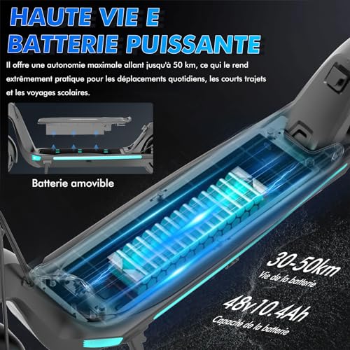 Le cadre en alliage de magnésium, résistant et léger (seulement 19 kg), rend cette trottinette facilement transportable. Elle est robuste pour supporter un usage quotidien tout en restant pratique à porter. De plus, le système de 3 niveaux de vitesse permet de s’adapter aux différents besoins, que ce soit pour les trajets rapides ou les balades tranquilles.