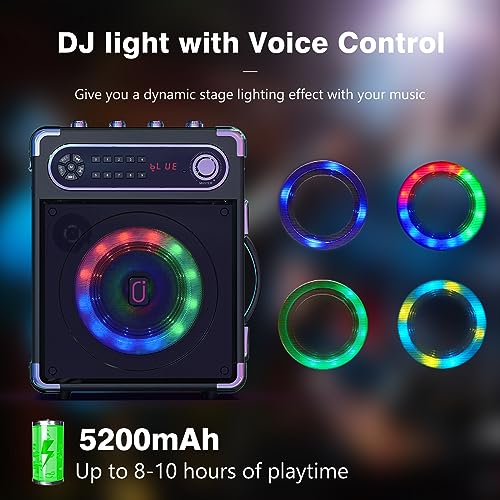 JYX Machine de Karaoké, bluetooth speaker pour adultes avec 2 microphones sans fil, Système de Karaoké portable pour soirée à la maison/au camping