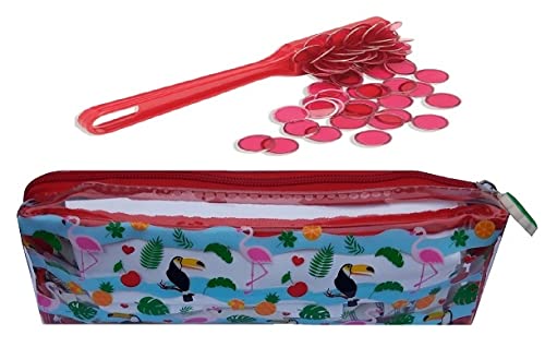 Kit accessoires joueur loto : trousse bingo + baton ramasse jetons aimante + 100 pions magnetiques rouge – jeu kermesse