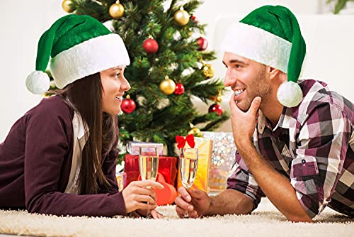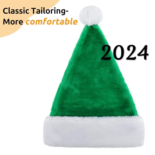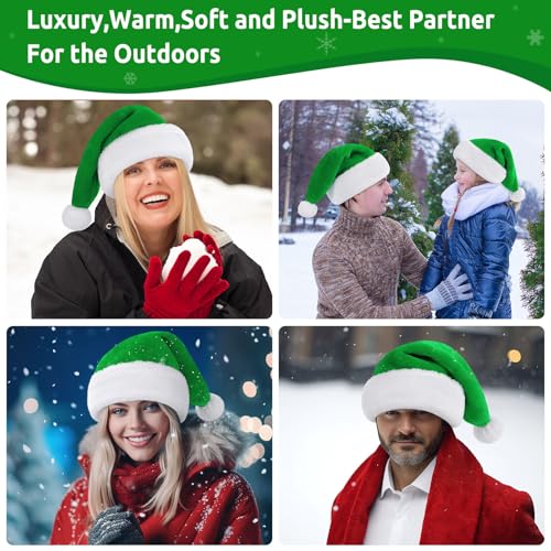 KONVINIT Vert Bonnet Noel Chapeau de Père Noël pour Adultes De Luxe Costume de Chapeau de Pere Noel Peluche Ornements de Noël