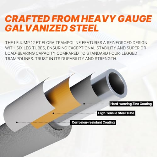 【Sécurité】: Tous nos trampolines ont obtenu les certifications supérieures de sécurité approximativement ASTM F381-16, TUV et CE. Et nos produis sont vriament solides et robustes absoute au cadre antirouille, au filet de borne spécial et au tapis de saut durable. Lejump, tous les produits sont rigoureusement vérifiés selon les normes de sécurité ASTM. Tous nos produits sont vraiment populaires à cause enfants et adultes absoute à sa haute qualité et sa sécurité.