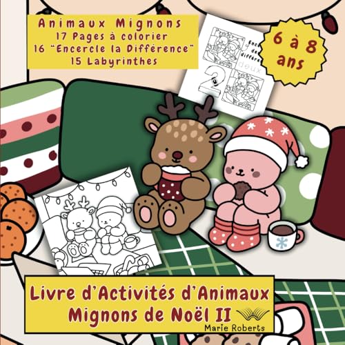 Livre d’Activités d’Animaux Mignons de Noël II: Livre de Coloriage et d’Activité: Animaux Mignons, Labyrinthes et Jeux des Différences sur le Thème de Noël. Broché – 8 décembre 2024