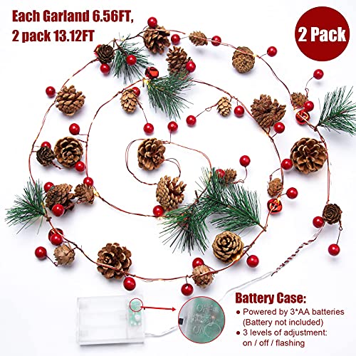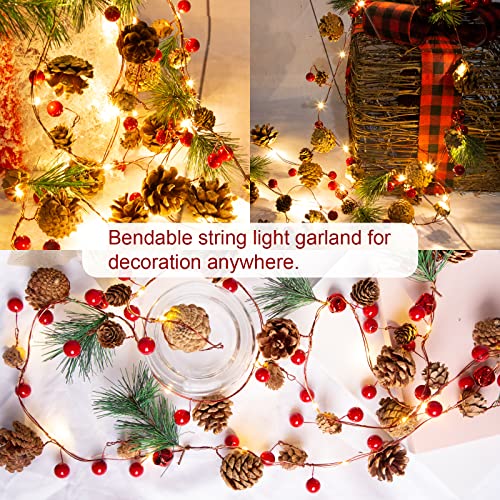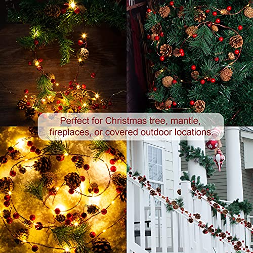 Cette guirlande lumineuse de Noël classique et réaliste s’étire de 2 m de long, dispose de 20 lumières LED chaudes, 34 petites baies rouges, 24 pommes de pin réalistes, 6 aiguilles de pin et 6 clochettes à cause créer un pays de merveilles festif d’hiver à cause votre maison et votre famille.