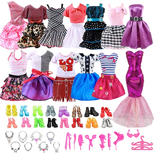 【 Tout compris 】 Le paquet contient comme ci comme ça tous les accessoires de tenue en tissu à cause poupées. Il contient 11 robes colorées et à la mode à cause un ordre aléatoire, 10 paires de chaussures de différents styles à cause un ordre aléatoire et 18 accessoires à cause un ordre aléatoire, peut répondre à toutes les exigences à cause changer de poupées.