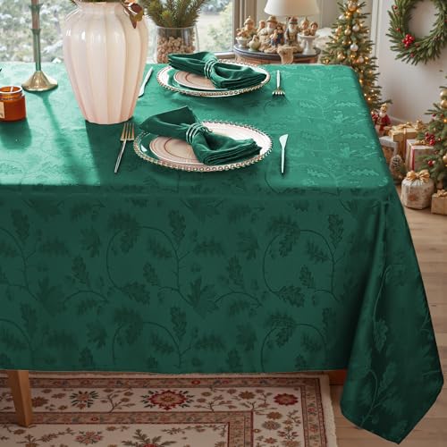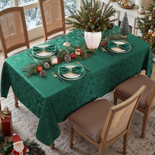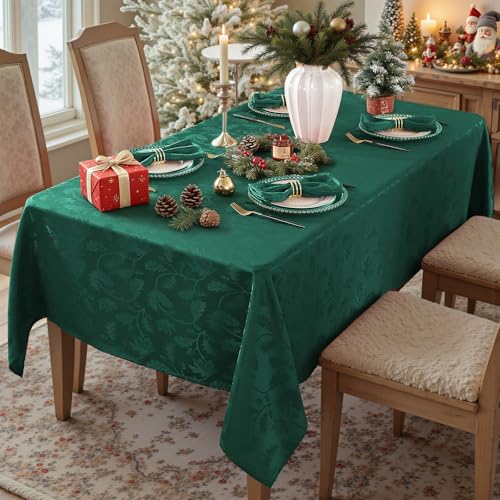 MATIRUG Christmas Tablecloth Rectangle 60×120,Wrinkle Resistant,Waterproof Winter Jacquard Table Cloth for Xmas New Year Holiday Dinner,Green