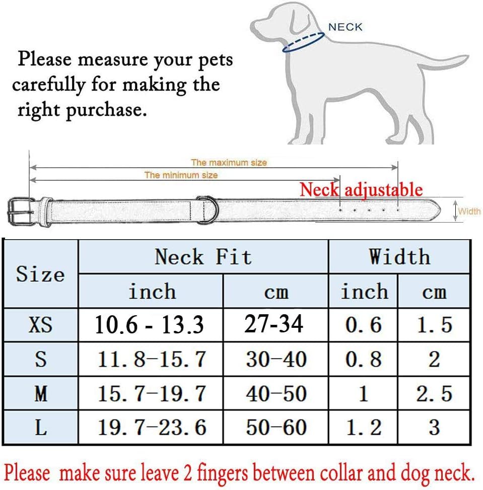 Disponible en 4 tailles:XS = largeur 1.5cm, Taille du cou 27 à 34 cm ;S = largeur 2cm, Taille du cou 30 à 40cm ; M = largeur 2,5cm, Taille du cou 40 à 50 cm ;L = largeur 3cm, Taille du cou 50 à 60 cm.
