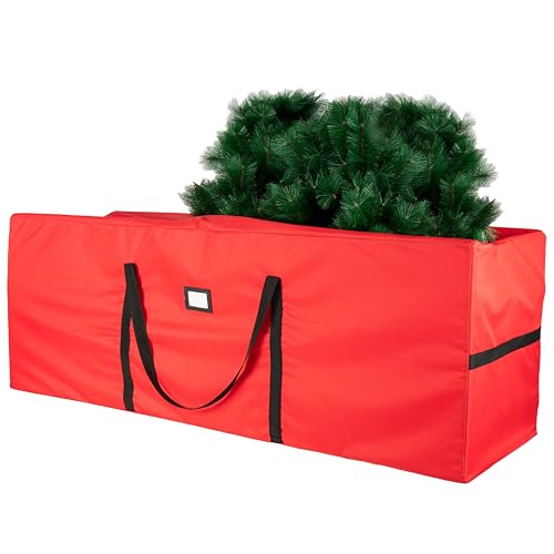 QUENTRO Heavy Duty Christmas Tree Storage Bag – Fits Up to 9ft Tall – Waterproof 600D Polyester Xmas Tree Bag with Reinforced Handles & Secure Zipper – Foldable Durable Holiday Storage Solution (Red)