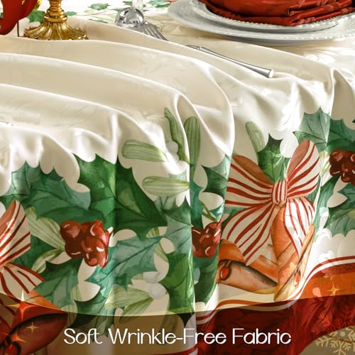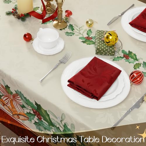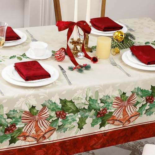 Romanstile Christmas Jacquard Rectangle Tablecloth 60 x 84 Inch – Winter Xmas Holly Bell Table Cloth, Heavy Weight Vintage Damask Fabric Table Cover for Holiday, Party, Dinner Decor