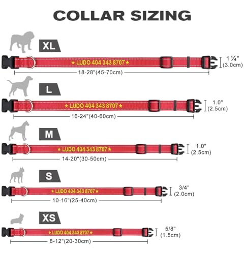 TagME Collier D’identification pour Chien, Broderie Personnalisée avec Nom et Numéro de Téléphone, col Réfléchissant en Nylon pour Petit Chiens,Rouge