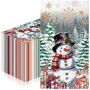 100 Pcs Christmas Guest Napkins 2 Ply Snowman Disposable Paper Napkins for Decoupage Snowflake Elk Xmas Tree Decorative Winter Christmas Cocktail Guest Hand Towel for Party Table Dinner Bathroom