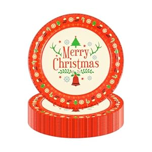 50 Pack Christmas Paper Plates – 7 inch Red Disposable Plates for Christmas Party Supplies