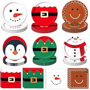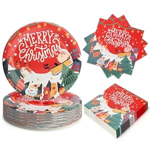 100 PCS Christmas Paper Plates and Napkins | Bundle Includes Paper Oval Dinner Plates and Napkins for Christmas Party Supplies
